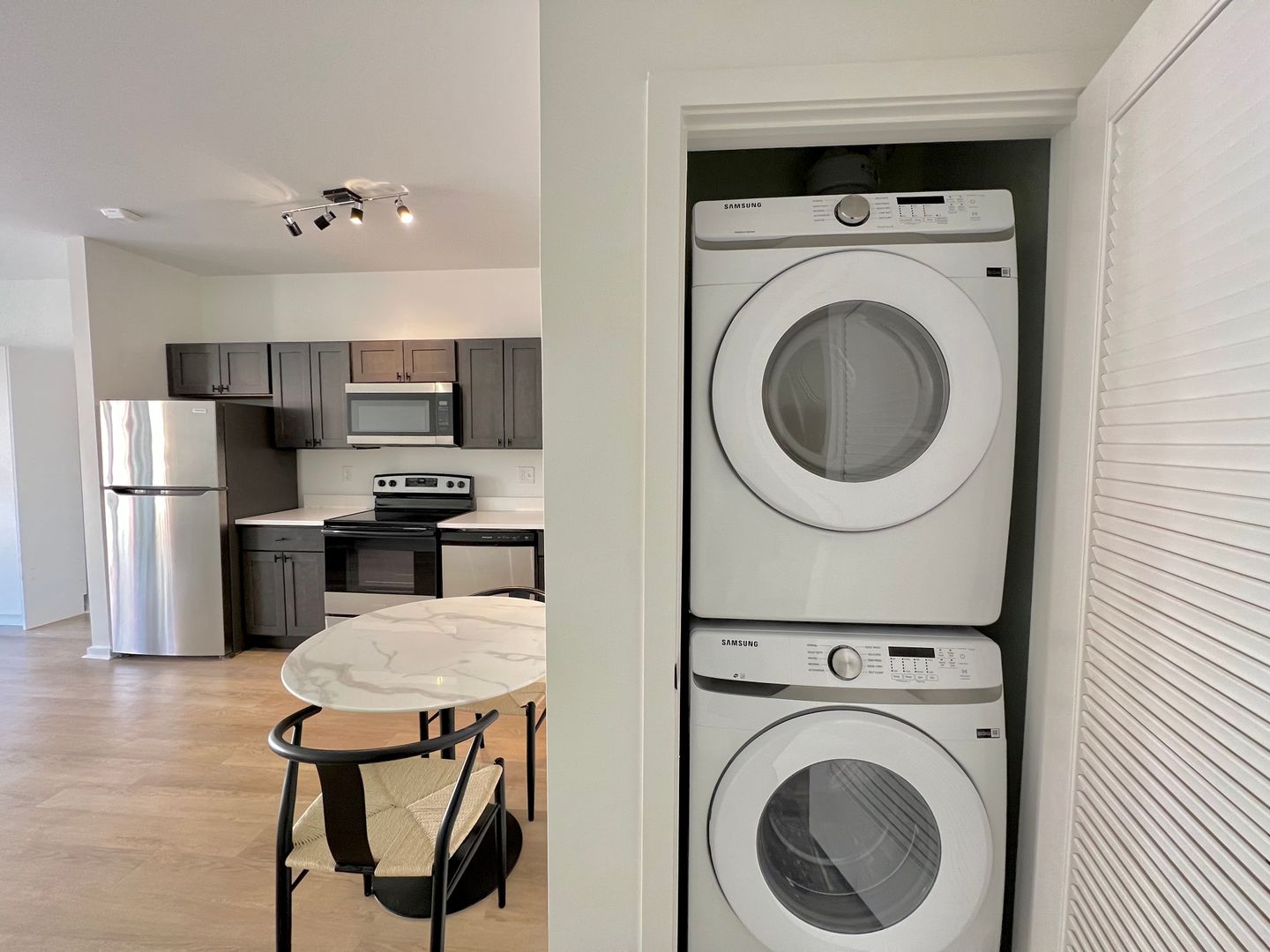 >Energy-efficient appliances - Microwave, Dishwasher, Fridge, Stove, and Garbage Disposal.