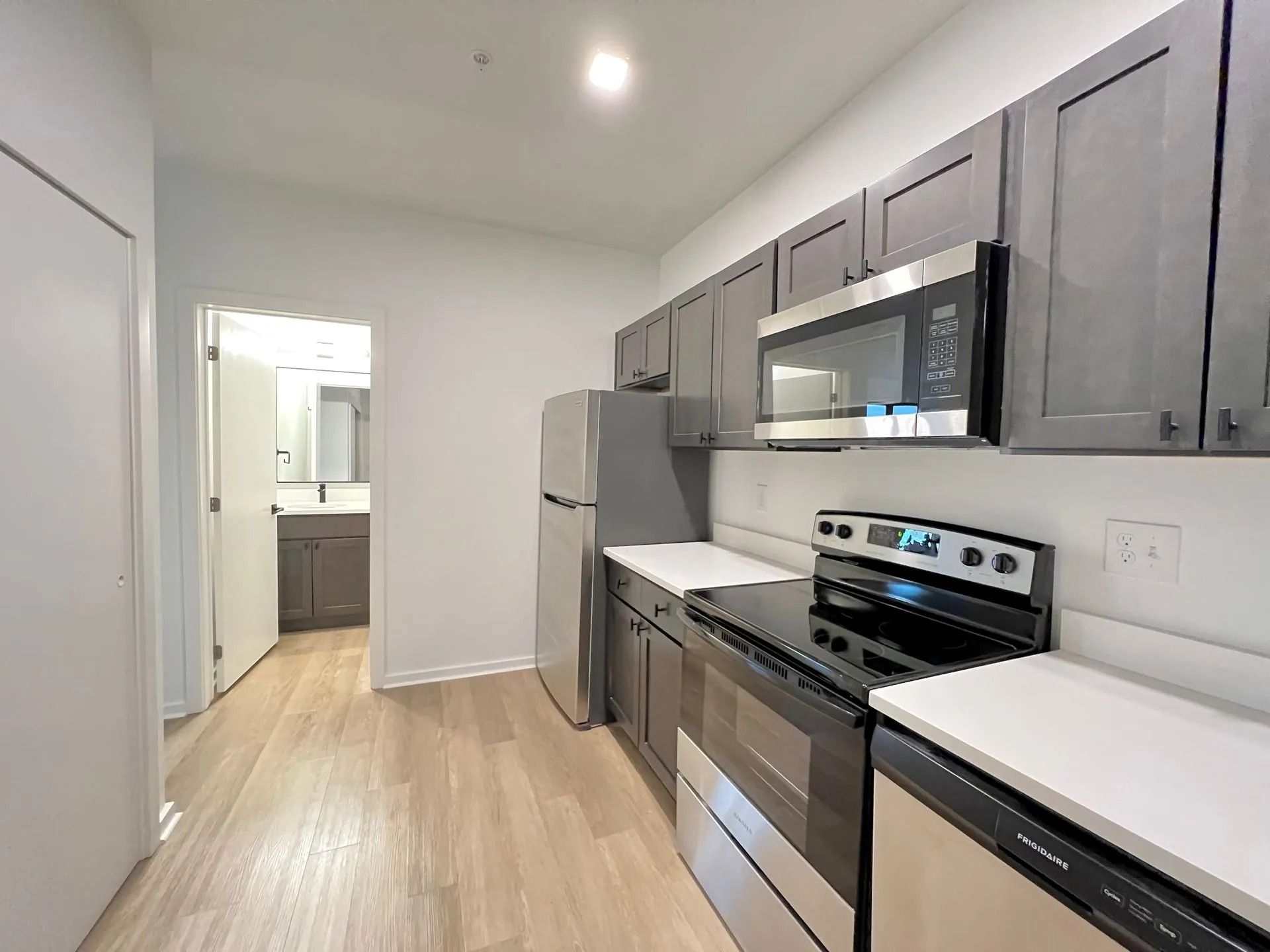 >Energy-efficient appliances - Microwave, Dishwasher, Fridge, Stove, and Garbage Disposal.